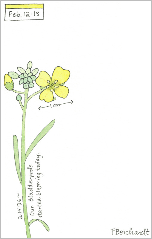 Here’s a Bladderpod I illustrated in my Perpetual Journal, drawn about 4 times life-size.